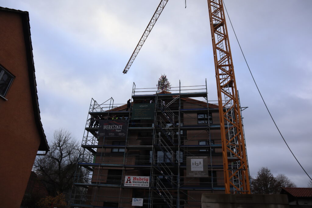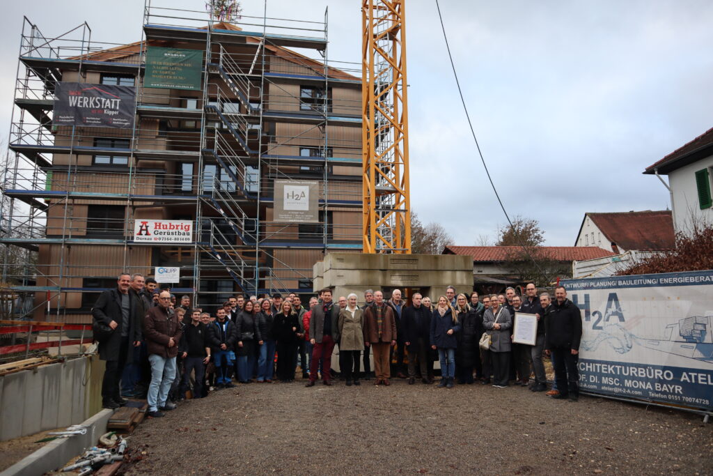 Mit großer Freude und einem dementsprechenden Richtspruch durch die Zimmerermeister der Fa. Bässler, wurde am vergangenen Wochenende das Richtfest für das neue Holzhaus in der Seegasse gefeiert. Nach intensiven Wochen des Bauens war es der perfekte Moment, innezuhalten, zurückzublicken – und vor allem: Danke zu sagen. Das viergeschossige Mehrfamilienhaus, das fast vollständig aus regionalem Holz errichtet wird, steht nun in seiner vollen Höhe. Der traditionelle Richterspruch markiert dabei einen wichtigen Meilenstein auf dem Weg zur Fertigstellung.
