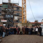 Bei bestem Herbstwetter versammelten sich Bauherrschaft, Architektin, Planer, Projektbeteiligte, Handwerker, Unterstützer und Gäste auf der Baustelle. Vom Gerüst aus wurde feierlich der Richterspruch gesprochen – ein jahrhundertealter Brauch, der auch in einem modernen Bauprojekt wie diesem seinen Platz hat. Die Zimmerleute ehrten mit ihrem Spruch das Haus, die Bauherrschaft und alle, die an der Entstehung mitgewirkt haben.